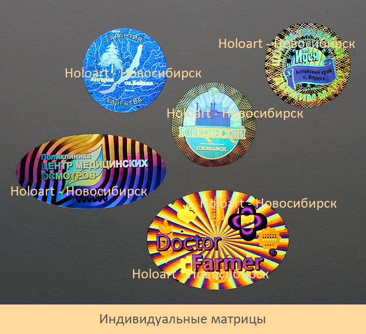 Индивидуальная матрица – это матрица, в которой вся основная информация о компании или продукте (название, логотип, слоган и пр.) делается исключительно голографическим способом. Такая матрица содержит все возможные степени защиты и максимально защищена от возможной подделки.