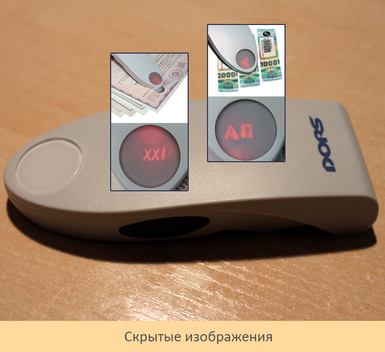 Второй по значимости элемент защиты – микрошрифты. Наличие микротекстов высотой от 10 мкм также позволяет убедиться в подлинности голограммы.